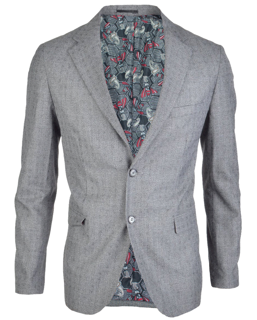 Expertly crafted for the modern man, the Eboni Men's Blazer boasts a sleek grey color and a stylish circular geometric jacquard design. This lightweight and versatile blazer is the perfect addition to your wardrobe, perfect for both work and formal occasions. Elevate your style effortlessly with Eboni.
