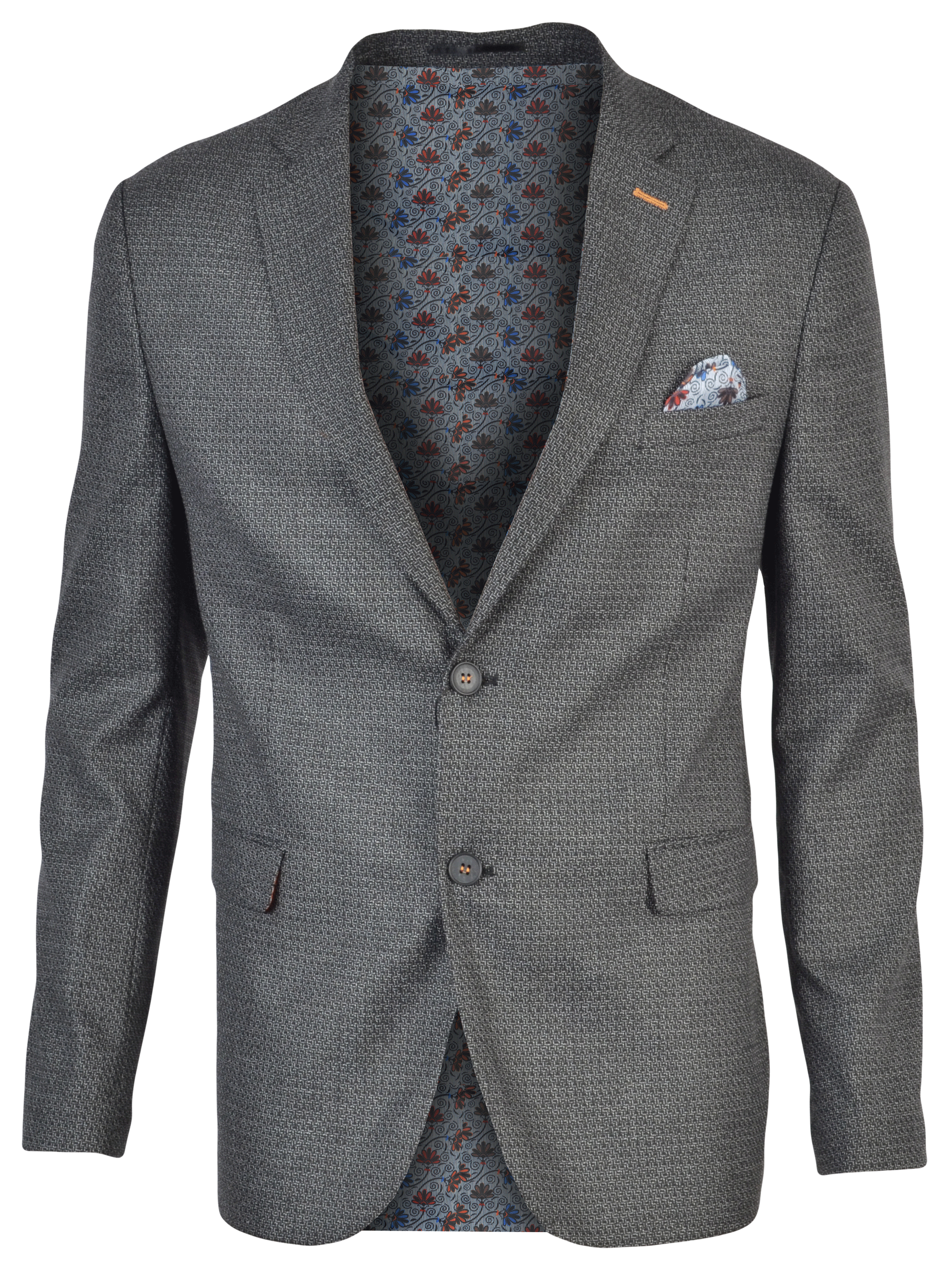 The Fine Lines sport blazer features a refined black fabric adorned with a subtle white square print, creating an intricate and sophisticated pattern. Accented with distinctive orange contrast stitching, it offers a modern twist to classic tailoring. Designed to complement black chinos or dress pants, this blazer effortlessly bridges the gap between professional settings and stylish evening occasions. Its detailed craftsmanship ensures a polished, expert look for both workdays and nights out.