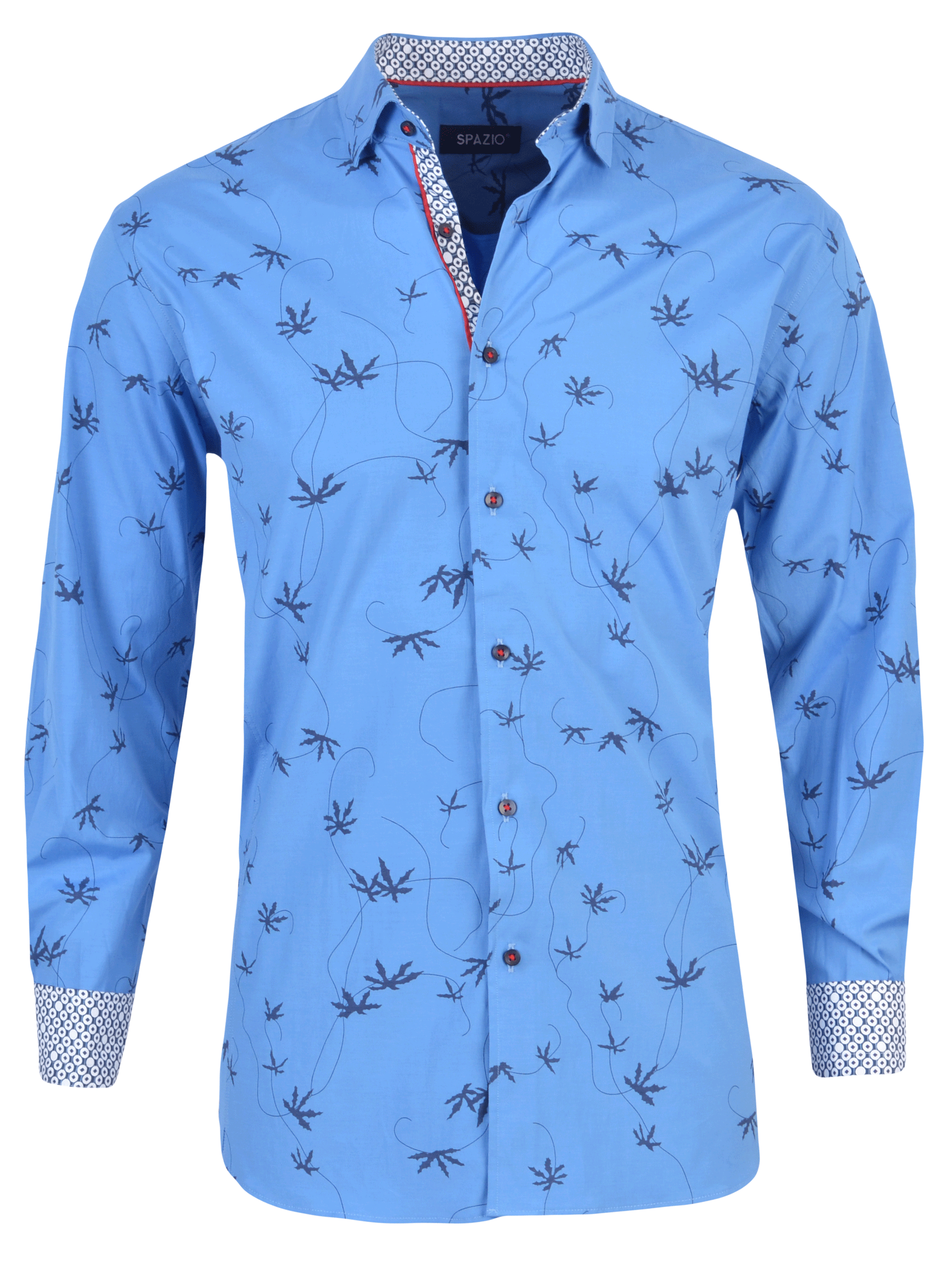 The Ivy Blue long sleeve dress shirt features a sophisticated dark navy ivy leaf print with crisp white and navy blue contrasts. This versatile shirt complements any denim for a smart-casual look or pairs seamlessly with navy chino pants to elevate your outfit for more formal occasions. Designed with attention to detail, it offers a refined style that balances classic patterns with modern versatility.